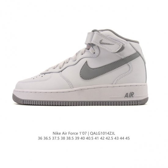 / 公司级 耐克 Nike Air Force 1 '07 空军一号含气垫 小白鞋 秋冬新款 加厚 中帮魔术贴 百搭厚底增高休闲运动板鞋。柔软、弹性十足的缓震性能和
