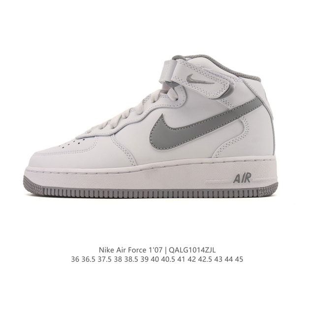 公司级 耐克 Nike Air Force 1 '07 空军一号含气垫 小白鞋 秋冬新款 加厚 中帮魔术贴 百搭厚底增高休闲运动板鞋。柔软、弹性十足的缓震性能和