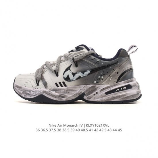公司级 耐克 Nike Air Monarch Iv男女子训练鞋厚底老爹鞋休闲复古运动鞋。Nike Air Monarch Iv 运动鞋为你打造出众的训练装备,耐穿鞋面提供有效支撑。轻盈泡绵结合 Nike Air 缓震配置,塑就舒适非凡的迈步体验。皮革、合成材质与织物组合鞋面,塑就经典外观,经久耐穿,全掌内嵌式 Air 缓震配置,缔造出众缓震体验,舒适非凡,支撑力强,硬质橡胶外底经久耐穿,提供可驾驭多种地面的出众抓地力。 类型:男女鞋 货号:415445-102 码数:36 36.5 37.5 38 38