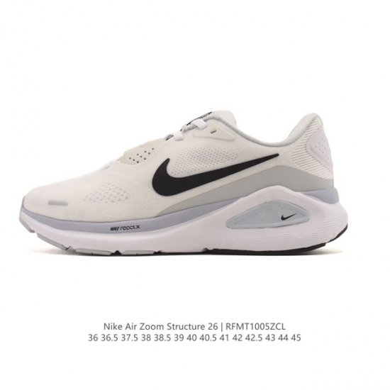公司级 耐克 Nike Zoomstructure 26运动舒适减震防滑耐磨低帮碳板训练跑步鞋女款厚底增高老爹运动鞋,这款跑鞋专为热爱跑步、追求稳定与缓震效果的跑者精心设计,无论是长距离慢跑、日常训练还是休闲穿搭,它都能完美契合您的需求。这款跑鞋延续了耐克在稳定类跑鞋上的深厚积淀,结合了品牌最成熟的稳定性支撑设计与柔软顺滑、回弹出色的缓震系统,标志着这一系列在稳定跑鞋领域迈入全新阶段。中足支撑系统:Structure 26搭载了耐克创新的中足支撑系统,包裹足弓内侧与后跟外侧,提供更强的稳定支撑。该系统融合