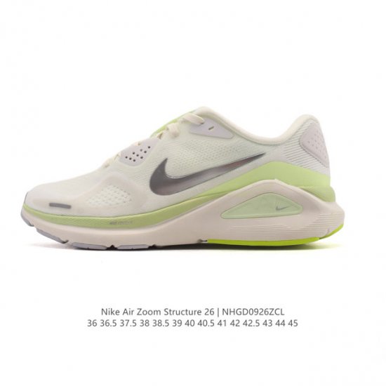公司级 耐克 Nike Zoomstructure 26运动舒适减震防滑耐磨低帮碳板训练跑步鞋男女款厚底增高老爹运动鞋,这款跑鞋专为热爱跑步、追求稳定与缓震效果的跑者精心设计,无论是长距离慢跑、日常训练还是休闲穿搭,它都能完美契合您的需求。这款跑鞋延续了耐克在稳定类跑鞋上的深厚积淀,结合了品牌最成熟的稳定性支撑设计与柔软顺滑、回弹出色的缓震系统,标志着这一系列在稳定跑鞋领域迈入全新阶段。中足支撑系统:Structure 26搭载了耐克创新的中足支撑系统,包裹足弓内侧与后跟外侧,提供更强的稳定支撑。该系统融
