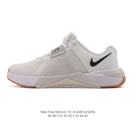 公司级 耐克Nike Metcon 10 男室内健身鞋低帮薄底健身运动鞋Hj1875 在后跟下方这一关键部位融入强韧 Hyperlift 外底,可在举重时有效提升稳定性,助力深蹲、硬举和挺举等动作,同时缔造无拘迈步体验。 与 Metcon 9 相比,加宽鞋头令脚趾可向外延伸,帮助整个足部有效发力。革新中底设计,搭配轻盈 Reactx 泡绵,提升能量回馈。 外底结合弯曲凹槽设计,在进行跳箱运动和快速冲刺等高强度训练时提供灵活的回弹缓震。中足和鞋头等高磨损区域融入坚韧粘性纹理,经匠心排布,铸就非凡抓地力和耐穿