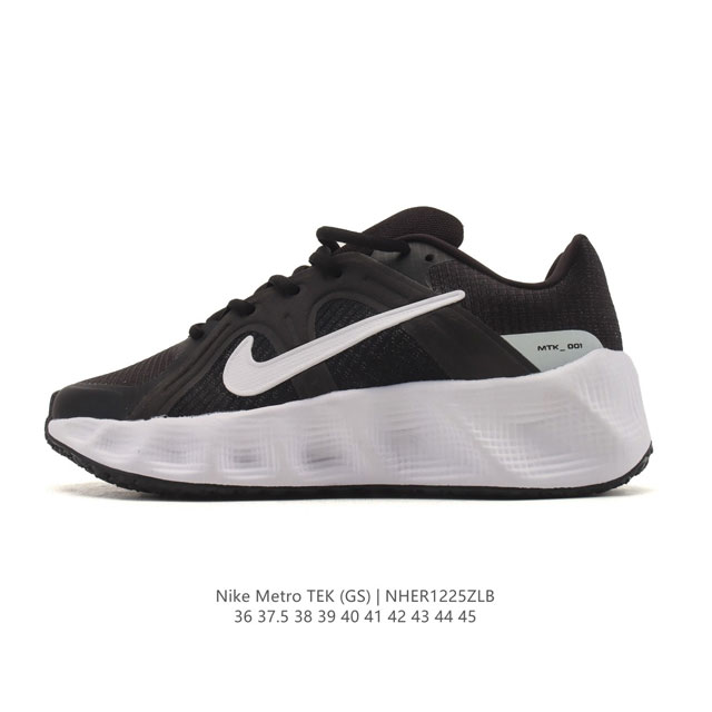 新品 耐克 Nike 男女款Metro Tek Gs 运动休闲鞋 鞋面选用了高透气性的网眼材质,确保足部在长时间活动中依然保持干爽。这种材料不仅柔软贴合,还能有