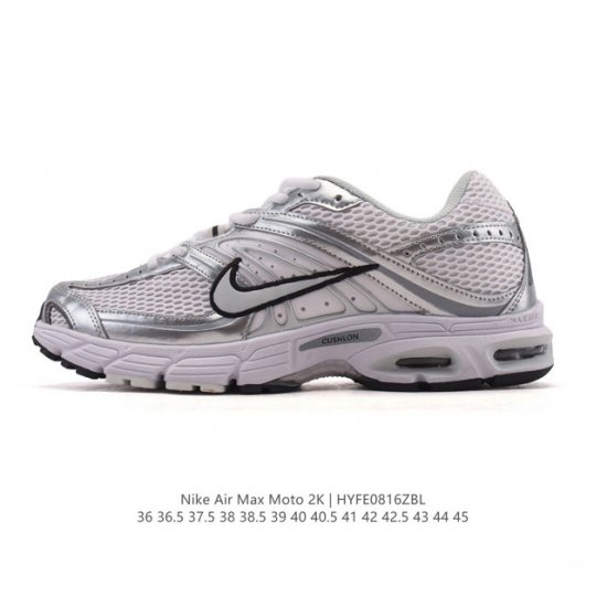 新品 耐克 Nike Air Max Moto 2K 2025秋男女鞋Air Max Moto Ii运动休闲鞋 Hq2056-101 Y2K 玩家狂喜!Nike 又一经典造型回归!注入式的中掌支撑系统和金属网眼提供支撑和透气性。轻而透气的网眼面料和合成材料组成的鞋面。合成革的脚跟,覆盖中掌的鞋带系统将双足锁在中底中。脚跟为双密度的聚亚安脂,Phylon的前掌,脚跟处Max Air气垫和前掌的内置气垫形成了独特的Nike式缓震系统前掌的充气橡胶和脚跟的耐用Brs1000碳质橡胶。Tpu承托盘减少重量的同时具