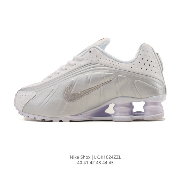 新品 耐克 Nike Shox R4 科技感运动鞋。金属质感鞋面 + 超大气柱 球鞋!Nike Shox R4上脚超炫酷Nike Shox R4十年经典鞋款,复古与现代的完美融合,款结合了现代设计与复古元素的运动鞋,真的是让人眼前一亮!它不仅拥有现代设计的时尚感,还融入了复古元素,简直是时尚与经典的完美结合。 采用Shox技术,由支撑性圆柱体组成的缓震系统,为你的双脚提供出色的缓冲效果。穿上它,仿佛置身于太空服和宇航装备的环绕之中,线条流畅,激光穿孔设计,仿佛随时都能以助推前进的姿态带你飞向未来。 货号:
