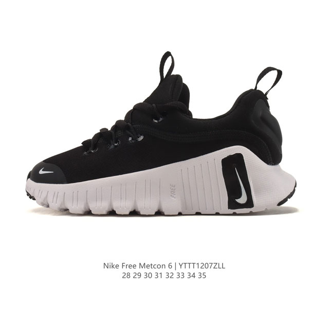 童鞋 耐克 Nike 2025年新款 Free Metcon 6 儿童训练鞋 全能运动鞋 厚底增高老爹鞋。穿上 Nike Free Metcon 6 训练鞋,在训练中解锁无限可能。 该训练鞋加大前足柔韧灵活性,并以泡绵加固后跟, 有助于在跳跃训练和有氧课程中自如驾驭动态运动,同时在举重训练中提供出众稳定性。中底和外底柔韧灵活,助力自如畅动。 外底融入激光凹槽设计,提升柔韧灵活性,无论是跳跃、平板支撑还是增强式训练,皆可助你一臂之力。 前足部位采用弧形设计,在瞬间爆发时实现出众敏捷性和疾速表现。恰到好处的支