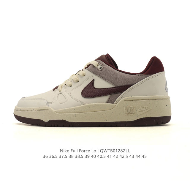 FFF 耐克 Nike 全新鞋型 来了!Nike Full Force Low 时尚复古运动板鞋,复古气质爆棚!近年来复古风的兴起,众多品牌纷纷推出自己的全新鞋款,势必要拿下口味极刁的球鞋爱好者。Nike 在最近也是重磅推出了 Full Force 这一鞋型,灵感来源于 1988 年的 Air Force Iii。采用简单的颜色搭配,营造出清爽又百搭的视觉效果。鞋面采用全皮革材质包裹整体性十足,同时鞋头打孔也为夏季穿搭带来一定透气性。鞋舌点缀超大篮球图案,彰显 Force 系列鞋款的篮球基因。最后,做旧乳