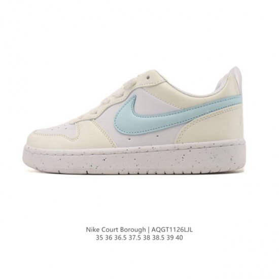 耐克 Nike 女子运动鞋 Court Borough Low 小空军低帮板鞋。1.其皮革材质的鞋面结合网眼鞋舌,在出众外观与质感的同时提供稳固支撑,并且提升透