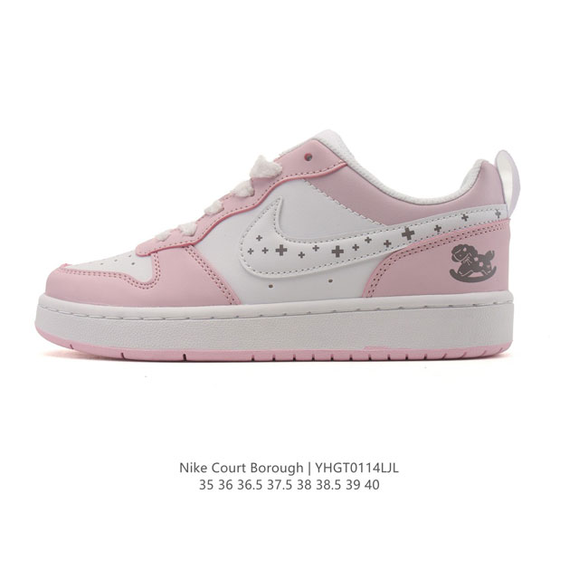 FFF 耐克 Nike 女子运动鞋 Court Borough Low 小空军低帮板鞋。1.其皮革材质的鞋面结合网眼鞋舌,在出众外观与质感的同时提供稳固支撑,并且提升透气性。弹力鞋垫,耐穿舒适,增加缓震性能。2.耐克Court也是耐克性价比比较高的鞋款,Court鞋型很像Aj1Low,鞋底很像Af1,当然还是有差别的,毕竟产品用料,定位都不一样,性价比来说还是不错的选择。3.这款鞋子加上外底采用扭转点设计,流畅启停,灵活抓地;鞋身有着耐克Logo标志,展现品牌价值。 DDD 类型:女鞋 DDD 货号:Dv