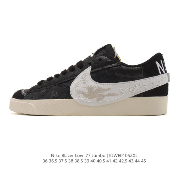 FFF 耐克 Nike Blazer Low '77 Jumbo 运动鞋,抓地板鞋,革新重塑经典街头人气鞋款,采用人气传统外观,巧搭大号耐克勾勾设计和宽大鞋带。柔软泡绵鞋舌搭配加粗缝线设计,彰显自 1977 年以来风靡街头的经典外观。大号耐克勾勾设计结合宽大鞋带,为你的穿搭增添醒目风范,鞋款融入 Blazer 的经典设计,采用缝制 透气网覆面搭配鞋头柔软翻毛皮装饰,彰显传统篮球风范,加粗缝线设计,大胆醒目,增添一抹不羁格调,橡胶外底融入人字形底纹,彰显经典外观,外露式泡绵鞋舌,宽大鞋带,加粗缝线设计,大号