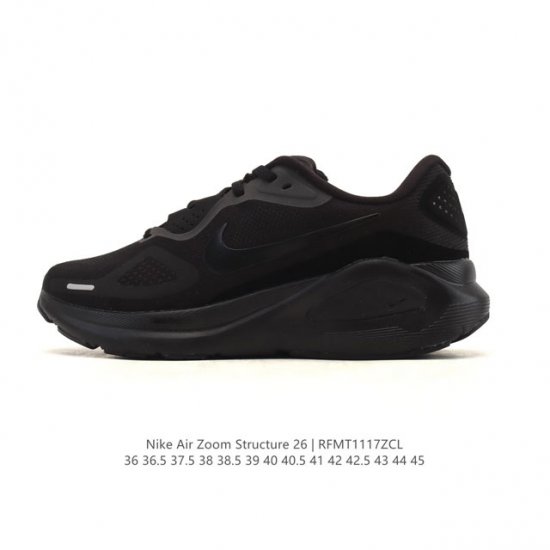 耐克 Nike Zoomstructure 26运动舒适减震防滑耐磨低帮碳板训练跑步鞋 男女款厚底增高老爹运动鞋,这款跑鞋专为热爱跑步、追求稳定与缓震效果的跑者精心设计,无论是长距离慢跑、日常训练还是休闲穿搭,它都能完美契合您的需求。这款跑鞋延续了耐克在稳定类跑鞋上的深厚积淀,结合了品牌最成熟的稳定性支撑设计与柔软顺滑、回弹出色的缓震系统,标志着这一系列在稳定跑鞋领域迈入全新阶段。中足支撑系统:Structure 26搭载了耐克创新的中足支撑系统,包裹足弓内侧与后跟外侧,提供更强的稳定支撑。该系统融合了全