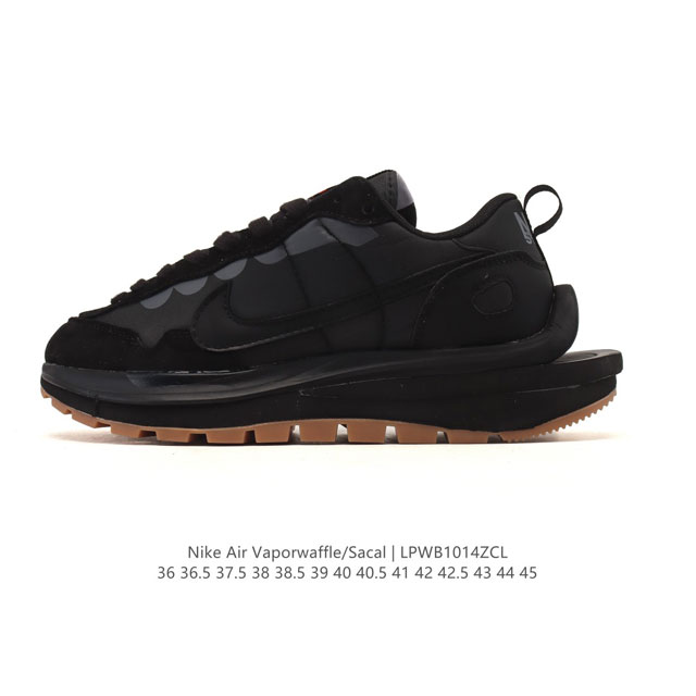 耐克 Sacai X Nike Vaporwaffle 华夫三代3.0 走秀重磅联名款运动鞋 。鞋款由Pegasus与Vaporfly两款鞋型的设计元素共同构建,鞋身材质由翻毛皮和透气网布共同打造。熟悉的解构手法、重叠Swoosh、双重鞋舌、鞋带以及后跟Sacai字体都悉数保留,最大亮点在于,本次鞋底变本加厉,层数更多简直和巴黎世家的Triples有一拼,增高效果妥妥的。 类型:男女鞋 货号:Cv1363 码数: 36 36.5 37.5 38 38.5 39 40 40.5 41 42 42.5 43