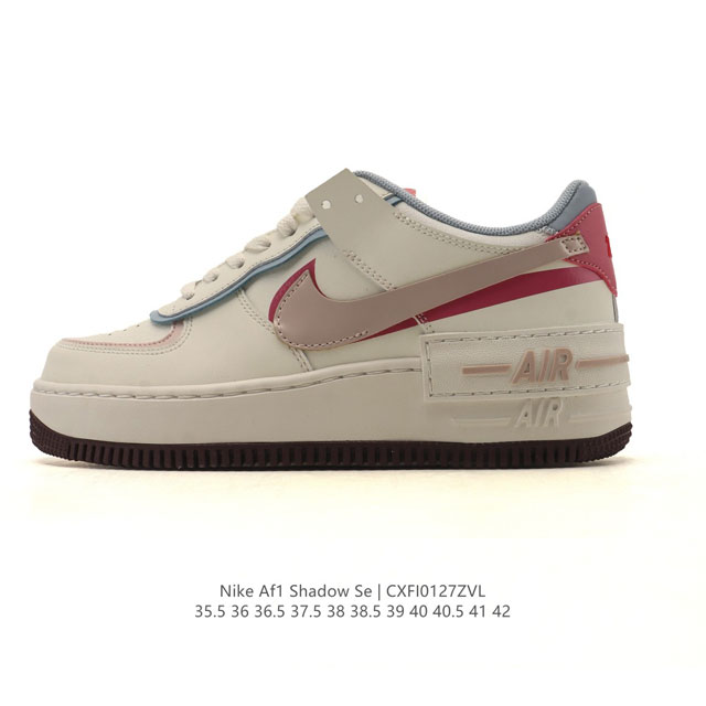 FFF Nike 耐克低帮板鞋 空军一号 Af1马卡龙 Af1厚底增高百搭运动板鞋 Nike Air Force 1 “Shadow” 造型设计上与 Sacai X Nike 系列颇为相似,带有浓厚解构风格,侧身 Swoosh 采用叠加的形式呈现,同时后跟也将标志性 “Air” 字样叠加,整体表现极为个性。 DDD 货号:Iq9803 DDD 尺码:35.5-42含半码 DDD 编码:Cxfi0127Zvl DDD
