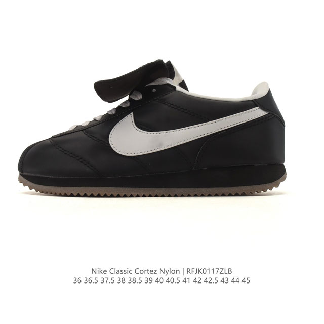 FFF Nike Classic Cortez Nylon 耐克阿甘鞋男女子运动鞋。秉承元年款经典风格,糅合防水鞋面设计,令双足保持干爽舒适。防水锦纶鞋面强势抵御风雨侵袭,缔造轻盈防护效果,传统鞋带系统和覆面设计增强贴合感,提升耐久性,彰显经典风格。低帮剪裁打造舒适脚感,提升运动自由度,Eva 泡棉中底轻盈缓震。纯色橡胶外底搭配人字形底纹,缔造出色耐久性和多向抓地力。 DDD 类型:男女鞋 DDD 货号:Dn1791 DDD 码数:36 36.5 37.5 38 38.5 39 40 40.5 41 42