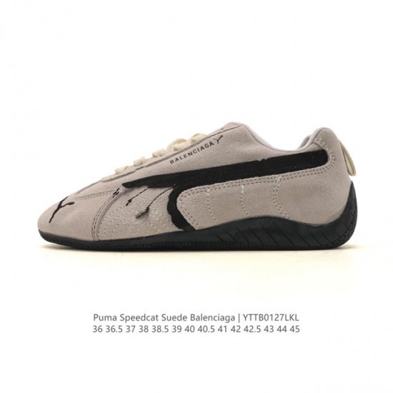 Puma 彪马 X Balenciaga巴黎世家 Speedcat 系列运动鞋 薄底鞋 牛皮绒面革 圆头做旧磨损 低帮 生活休闲鞋,极速赛车系列 复古运动休闲跑