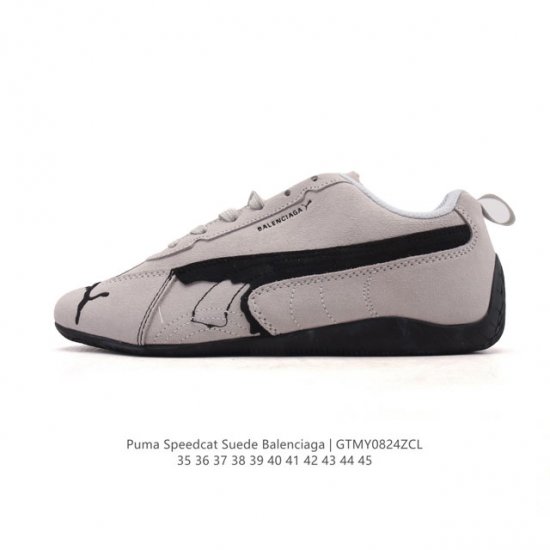 Puma 彪马 X Balenciaga巴黎世家 Speedcat 系列 薄底鞋 牛皮绒面革 圆头做旧磨损 低帮 生活休闲鞋
