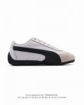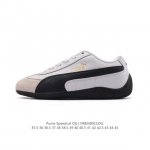 puma Speedca Og 彪马极速赛车系列低帮德训风拼接复古百搭休闲运动赛车鞋 鞋款从80、90年代赛车手所穿的防火赛车鞋为原型,鞋身线条模仿了赛车的流线廓形,体现了空气动力学原理的结构。简约流畅的外观,恰好又和贯穿其中的Formstrip Logo融合恰到好处,视觉上细节丰富且协调。本次Speedcat Og鞋款归来,最大看点自然式保留了窄版鞋型以及薄底构造。这两年各品牌鞋底越做越厚,Speedcat反其道而行之,上脚几乎无鞋底的效果带来耳目一新的视觉体验。鞋面依旧是以质感透气柔软皮革材质打造,并