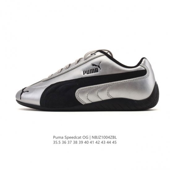 Puma Speedca Og 彪马极速赛车系列低帮德训风拼接复古百搭休闲运动赛车鞋 鞋款从80、90年代赛车手所穿的防火赛车鞋为原型,鞋身线条模仿了赛车的流线廓形,体现了空气动力学原理的结构。简约流畅的外观,恰好又和贯穿其中的Formstrip Logo融合恰到好处,视觉上细节丰富且协调。本次Speedcat Og鞋款归来,最大看点自然式保留了窄版鞋型以及薄底构造。这两年各品牌鞋底越做越厚,Speedcat反其道而行之,上脚几乎无鞋底的效果带来耳目一新的视觉体验。鞋面依旧是以质感透气柔软皮革材质打造,并