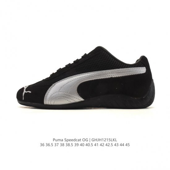 puma Speedcat Og 彪马极速赛车系列 低帮德训风拼接复古百搭休闲运动赛车鞋 鞋款从80、90年代赛车手所穿的防火赛车鞋为原型,鞋身线条模仿了赛车的流线廓形,体现了空气动力学原理的结构。简约流畅的外观,恰好又和贯穿其中的Formstrip Logo融合恰到好处,视觉上细节丰富且协调。本次Speedcat Og鞋款归来,最大看点自然式保留了窄版鞋型以及薄底构造。这两年各品牌鞋底越做越厚,Speedcat反其道而行之,上脚几乎无鞋底的效果带来耳目一新的视觉体验。鞋面依旧是以质感透气柔软皮革材质打造